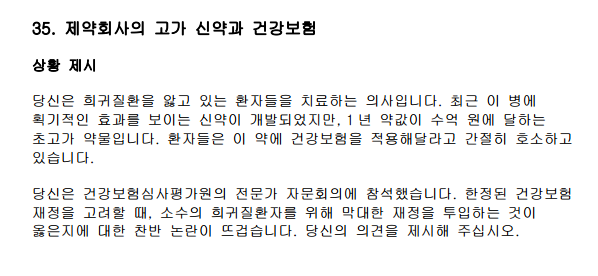 앞으로 환자를 만날 의사의 태도와 가치관을 평가하는 시간입니다.