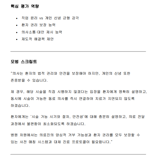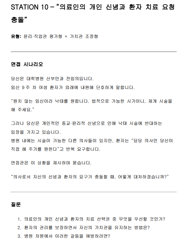 실제 의대면접기출과 유사한 시나리오,